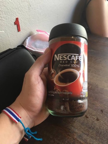 Majd a nagy izgalmak után gondoltuk, végre iszunk egy kávét. A hely jónak tűnt, de az espresso szó hallatán annyit mondott, neki csak thai kávéja van. Még jobb! Kértük, mutassa meg, ekkor elővett egy Nescafé üveget, hogy ez lenne az. Most erre mit mást mondhattunk volna, legyen, ez a nap úgy tűnt, mát ilyen. Ki is hozta telenyomva sűrített tejjel és cukorral, gondolom a saját ízlése szerint…