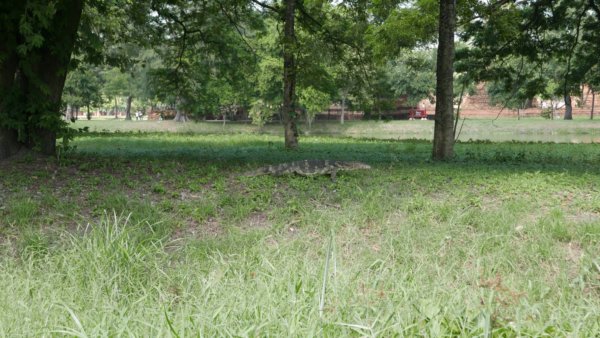 Ahogy telt az idő, úgy emelkedett a látogatók száma is, ezért tényleg érdemes minél korábban kimenni. A közeli parkban pedig felfedeztünk egy varánuszt (nem ez volt az első, láttunk egyet Bangkokban is az utcán). Ha valakinek több ideje van, érdemes biciklit is bérelni, úgy bejárni a várost és felkeresni az összes emlékművet. Nekünk sajnos nem volt, ugyanis este már Chiang Mai várt minket, ahova Bangkokból repültünk át.